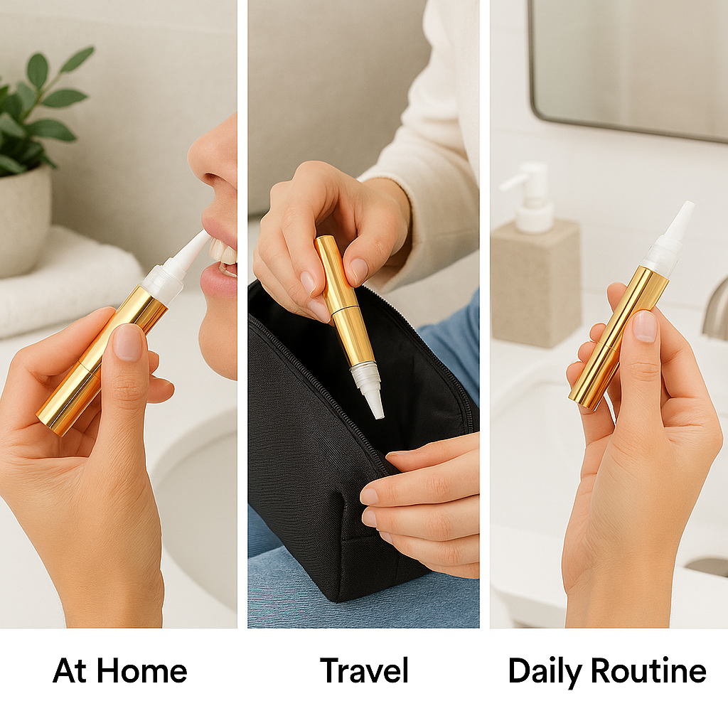 Forget 30-minute trays. This compact whitening pen lets you apply in seconds, dry in under a minute, and go on with your day. No mess. No waiting. Just whiter teeth — fast.